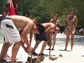 To work up our appetite, the tour guide organized a coconut-husking contest among a few men in the group. Cuz hey, you never know when you may need to husk one of these on the fly.
