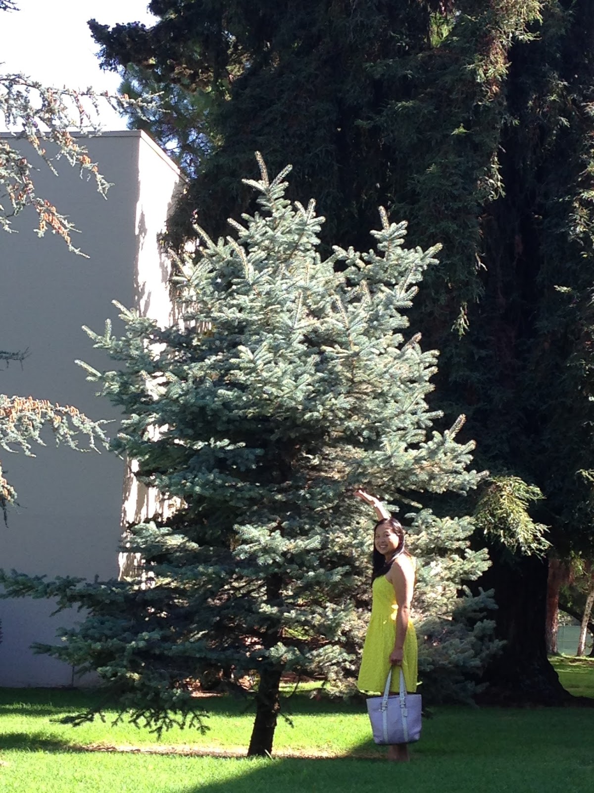 The morning after the festivities, we took a walk to our Alma Mater where we met, SJSU, to digest the huge buffet breakfast. Right outside the Faculty Offices Building stands a pine tree that was smaller than me when I went to school there, since it had just gotten planted around that time. I dubbed it "The Tree that Never Grows." I guess it grew just a little bit eight years after my graduation.